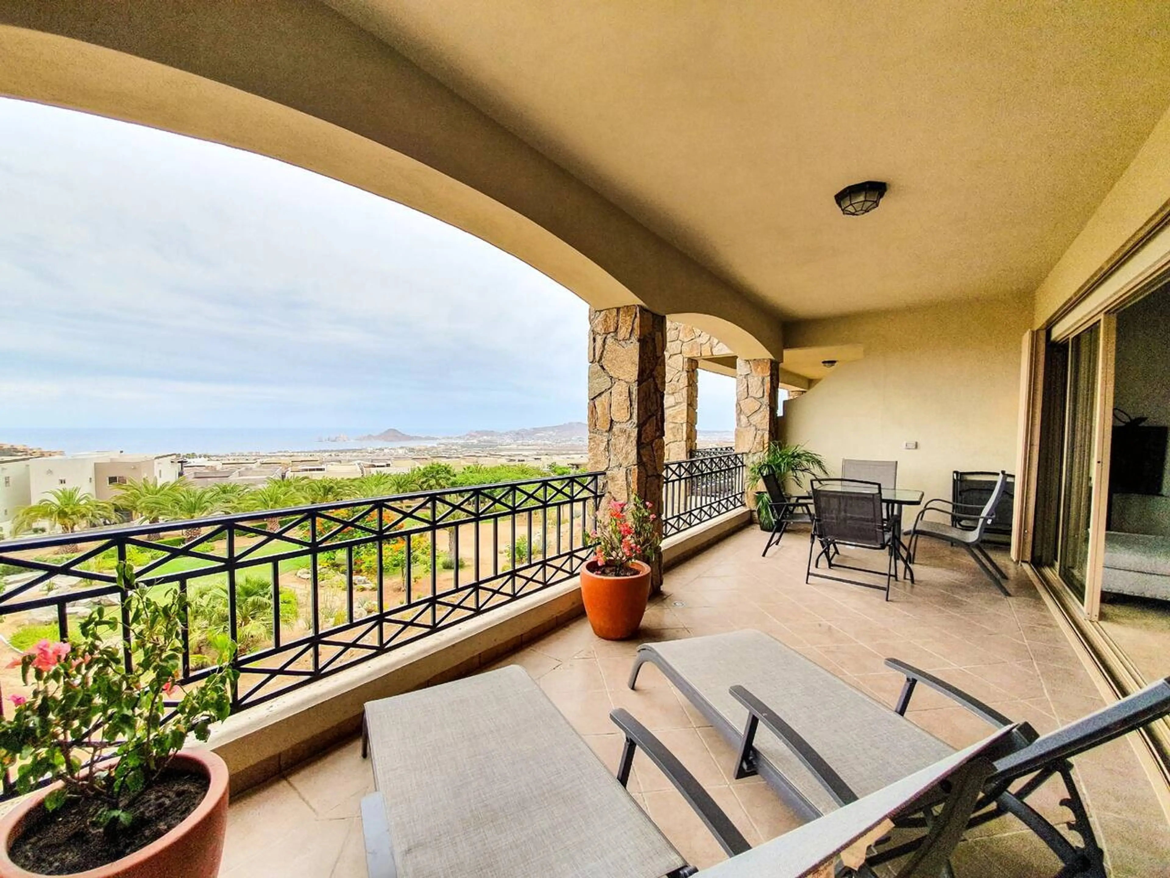 - Balcón privado con asientos, amplias vistas al mar hacia El Arco; perfecto para disfrutar del atardecer. - Cocina, cafetera, Smart TV, wifi para ver películas o trabajar, lavadora y secadora. - Piscina comunitaria estilo resort a solo unos pasos del condominio, canchas de tenis y área de juegos in...